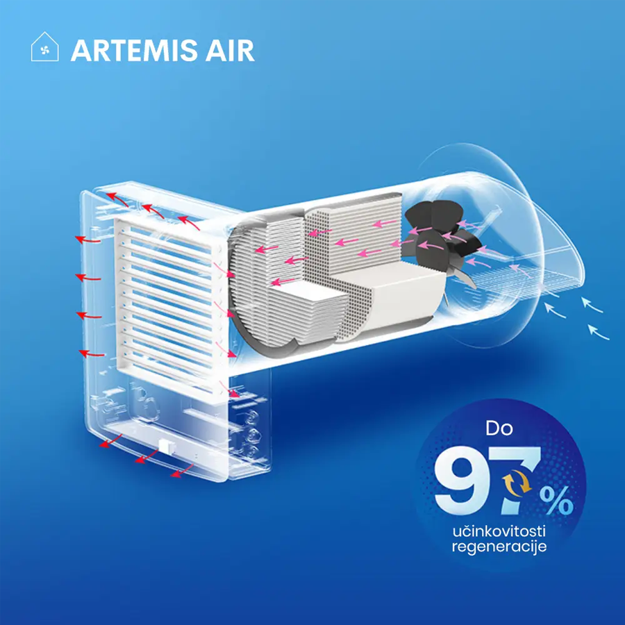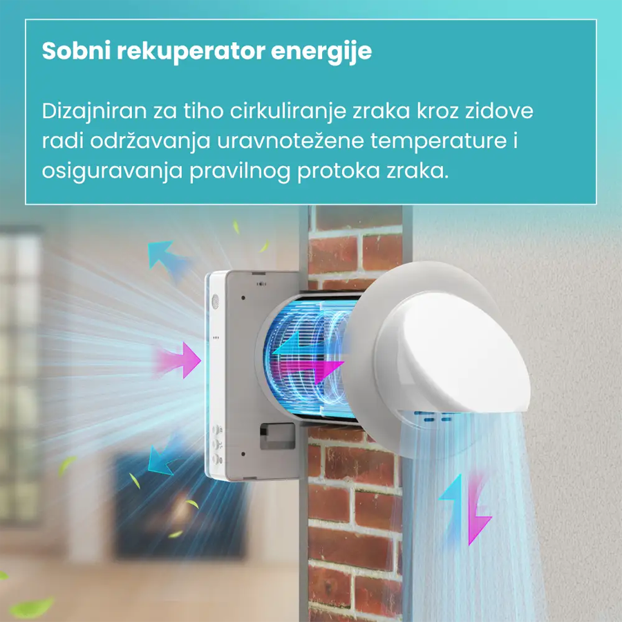 Artemis Rekuperator zraka Eco v.2 s F7 filtracijom, tihim radom, keramičkom jezgrom i naprednim upravljanjem CO₂/vlagom – idealan za decentraliziranu ventilaciju.
