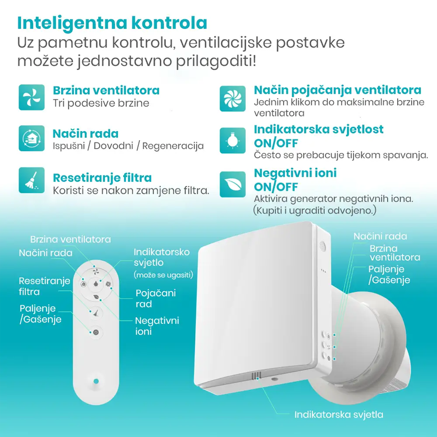 – Ugradnja: rupa 170–180 mm, keramički regenerator, antibakterijski premaz