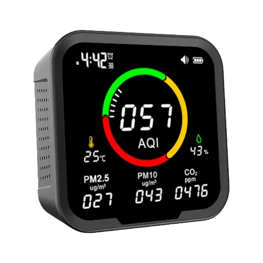 Monitor kvalitete zraka (IAQ monitor) precizno prati najvažnije parametre zraka u vašem domu ili poslovnom prostoru. Idealan je za sve koji žele imati kontrolu nad kvalitetom zraka i pravovremeno reagirati na povećanje štetnih čestica ili CO2.