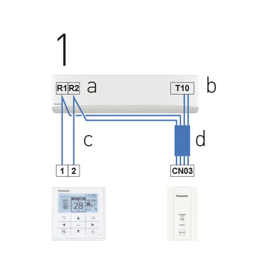 Ovaj wifi adapter spaja se na unutarnju jedinicu putem T10 priključka i terminala R1/R2, dok duljina komunikacijskog kabela od 1.9 metara osigurava fleksibilnu montažu. Kompaktne dimenzije i diskretan dizajn omogućuju brzo postavljanje bez dodatnih zahvata.