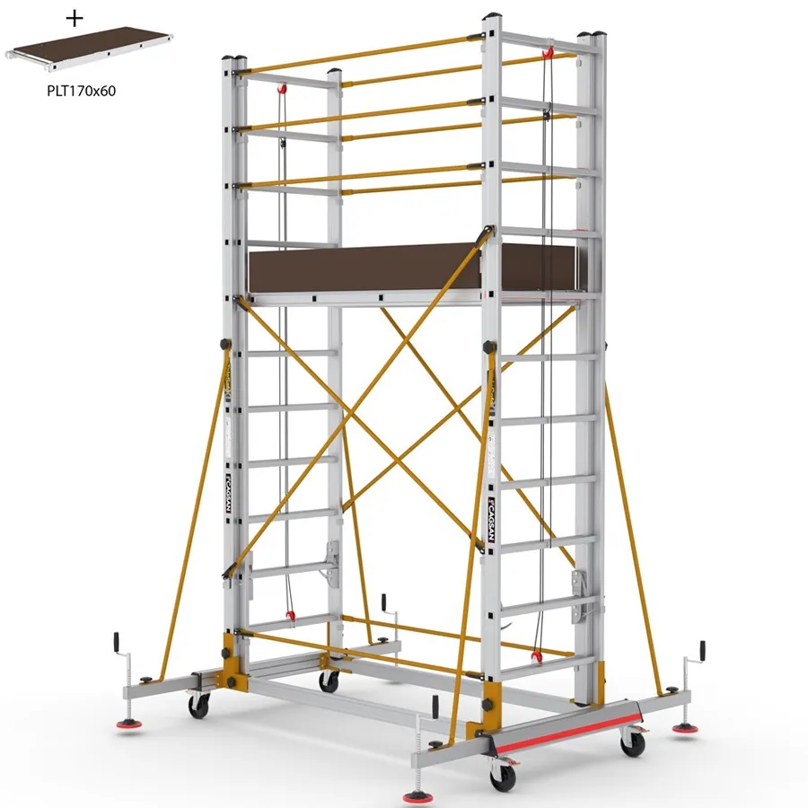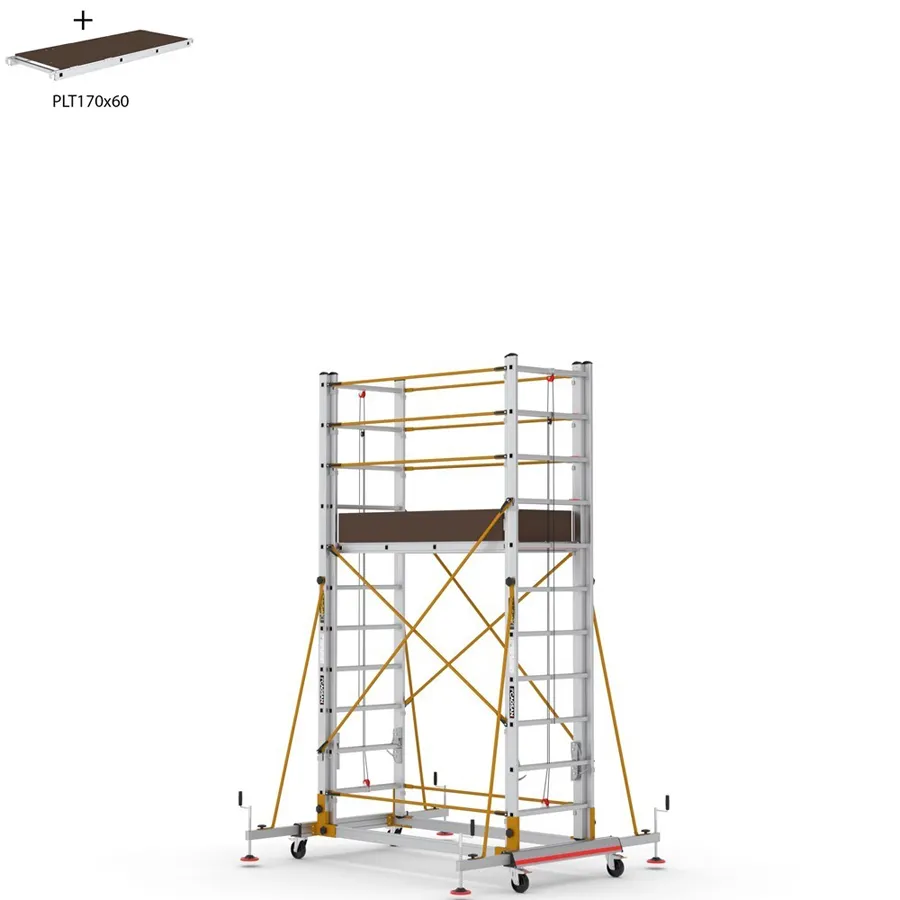 Integrirani sustav užadi omogućuje jednostavno podizanje i spuštanje radne platforme na željenu visinu, bez potrebe za rastavljanjem konstrukcije. Time ova pokretna skela postaje idealna za radove gdje se visina pristupa često mijenja, primjerice kod instalacija, održavanja fasada, industrijskih hala i servisnih zahvata na većim visinama.