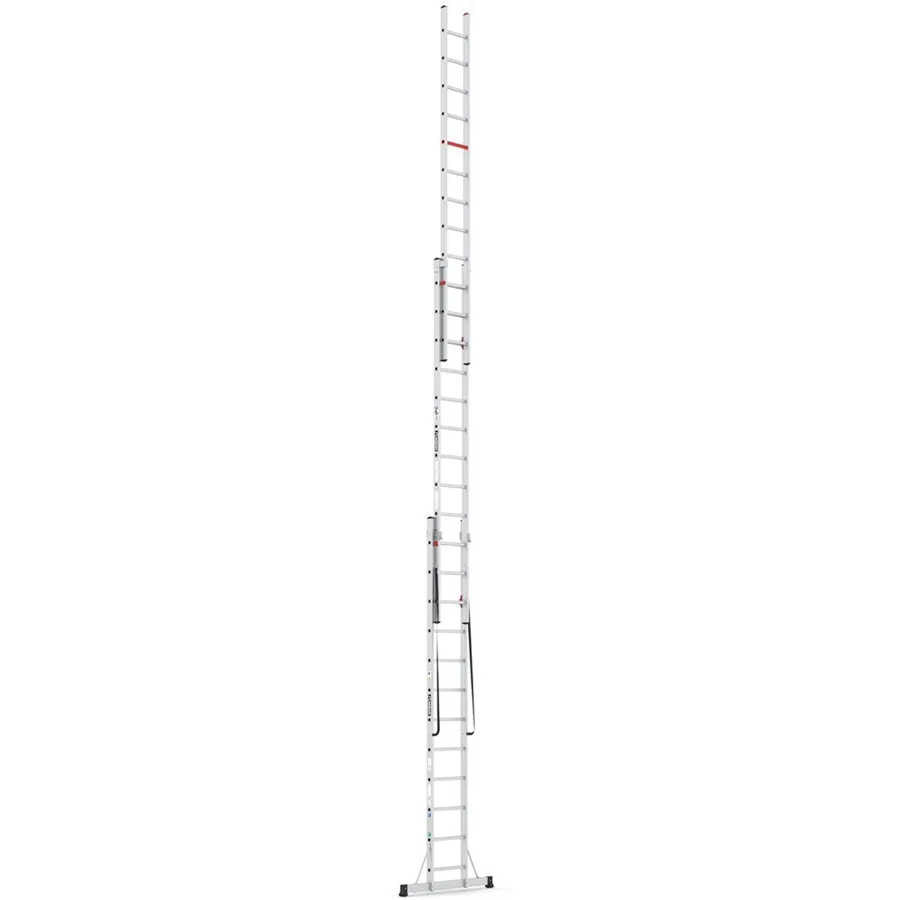 Ove trodjelne aluminijske ljestve koriste se kao naslonjene ljestve, samostojeće A-ljestve ili produžene ljestve, uz robusnu aluminijsku konstrukciju i certifikat EN 131.