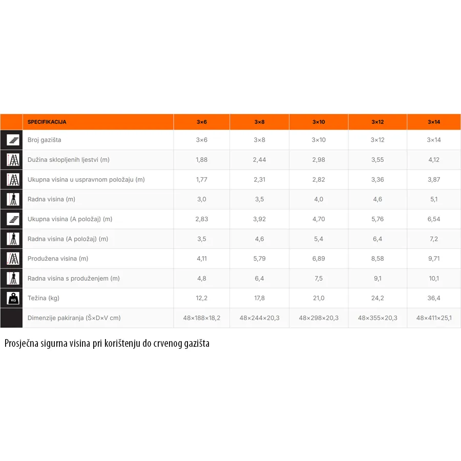 • Duljina sklopljenih ljestvi: 3,55 m