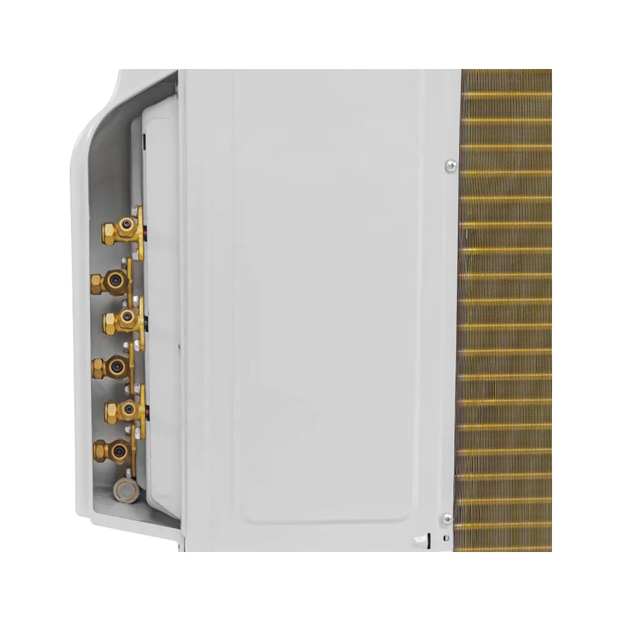 Unaprijeđeni rashladni krug i optimizirana izmjena topline omogućuju stabilne performanse i pri visokim vanjskim temperaturama. Konstrukcija vanjske jedinice prilagođena je kontinuiranom radu i pouzdanom napajanju više unutarnjih jedinica, bez kompromisa po pitanju komfora.