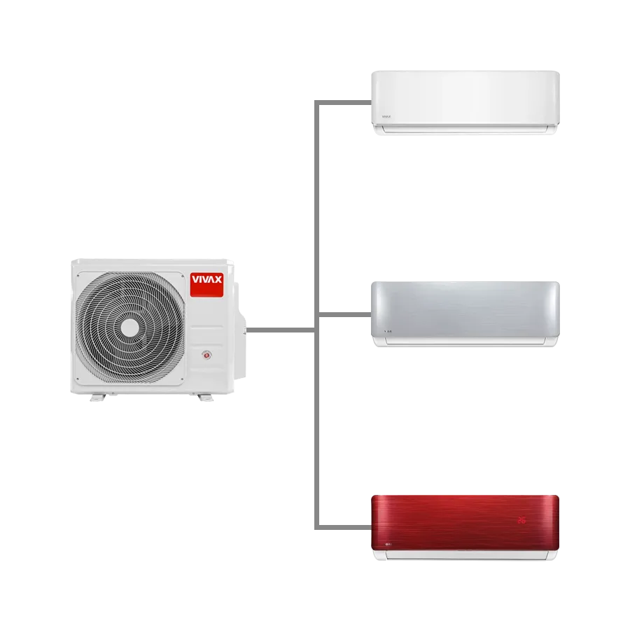 Vivax multi split sustav omogućuje kombiniranje različitih tipova unutarnjih jedinica unutar jednog rješenja, ovisno o rasporedu i namjeni prostora. Time se postiže visoka razina fleksibilnosti pri projektiranju klimatizacije, uz uredan izgled objekta i smanjen broj vanjskih jedinica.