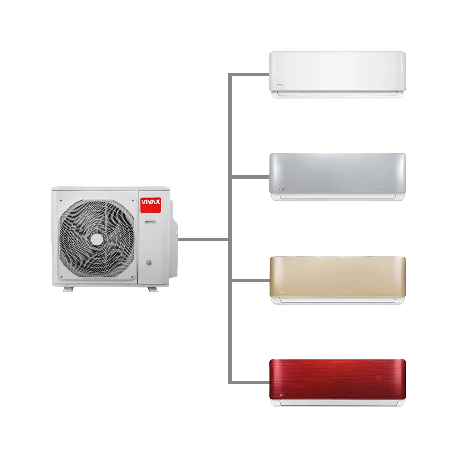 Vivax multi split sustav omogućuje kombiniranje različitih tipova unutarnjih jedinica unutar jednog rješenja, ovisno o rasporedu i namjeni prostora. Time se postiže visoka razina fleksibilnosti pri projektiranju klimatizacije, uz uredan izgled objekta i smanjen broj vanjskih jedinica.